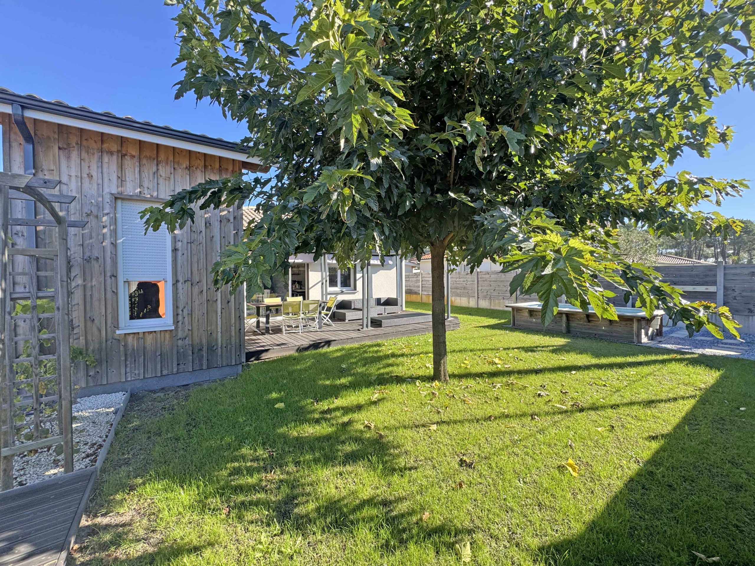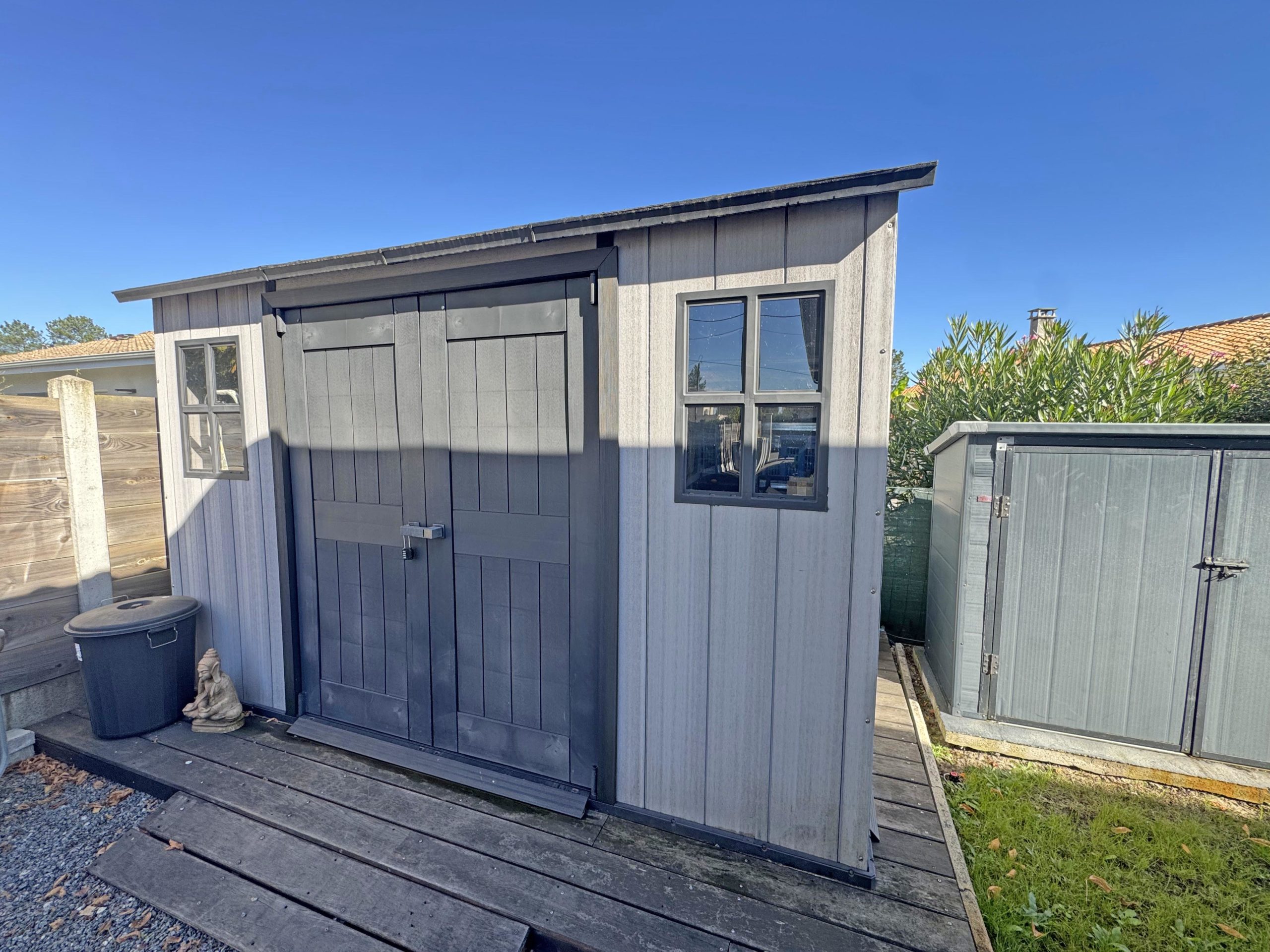 Un jardin adorablement aménagé, avec arrosage intégré, une piscine hors sol pour profiter des beaux jours et une charmante cabane qui fera rêver les enfants.