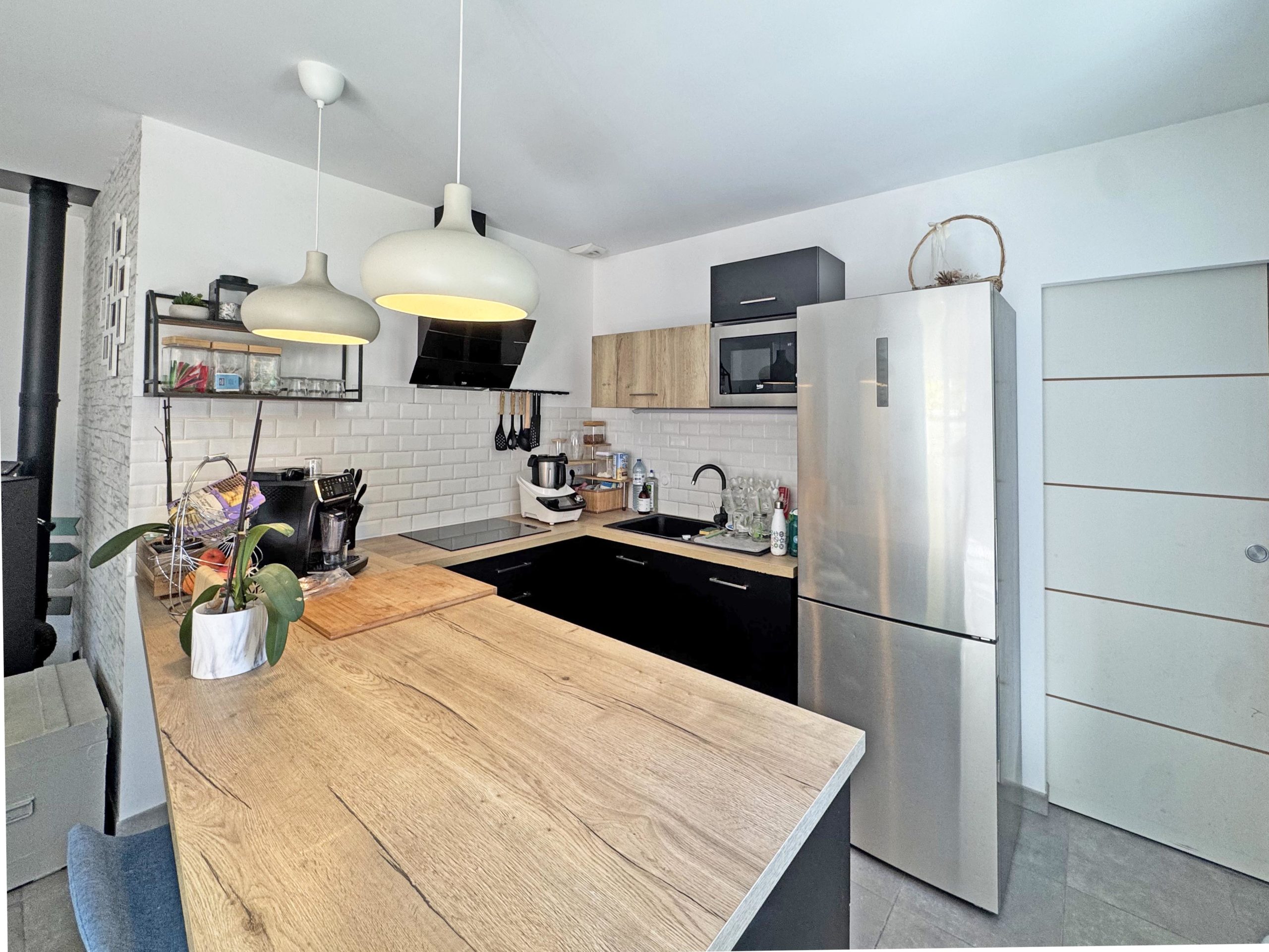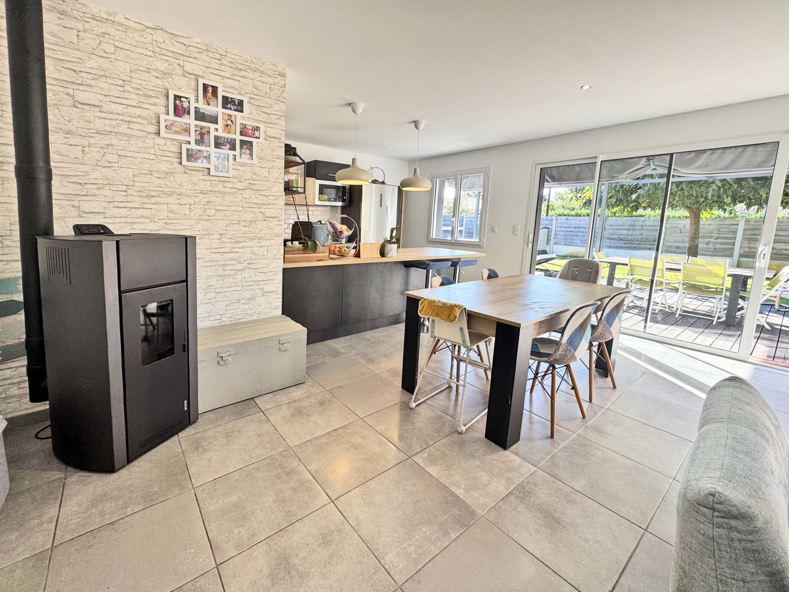 Dès l’entrée, vous serez séduits par sa grande pièce de vie lumineuse de 37 m², où le poêle à granulés diffuse une douce chaleur. L’espace est convivial, ouvert, parfait pour les repas en famille ou les soirées entre amis.